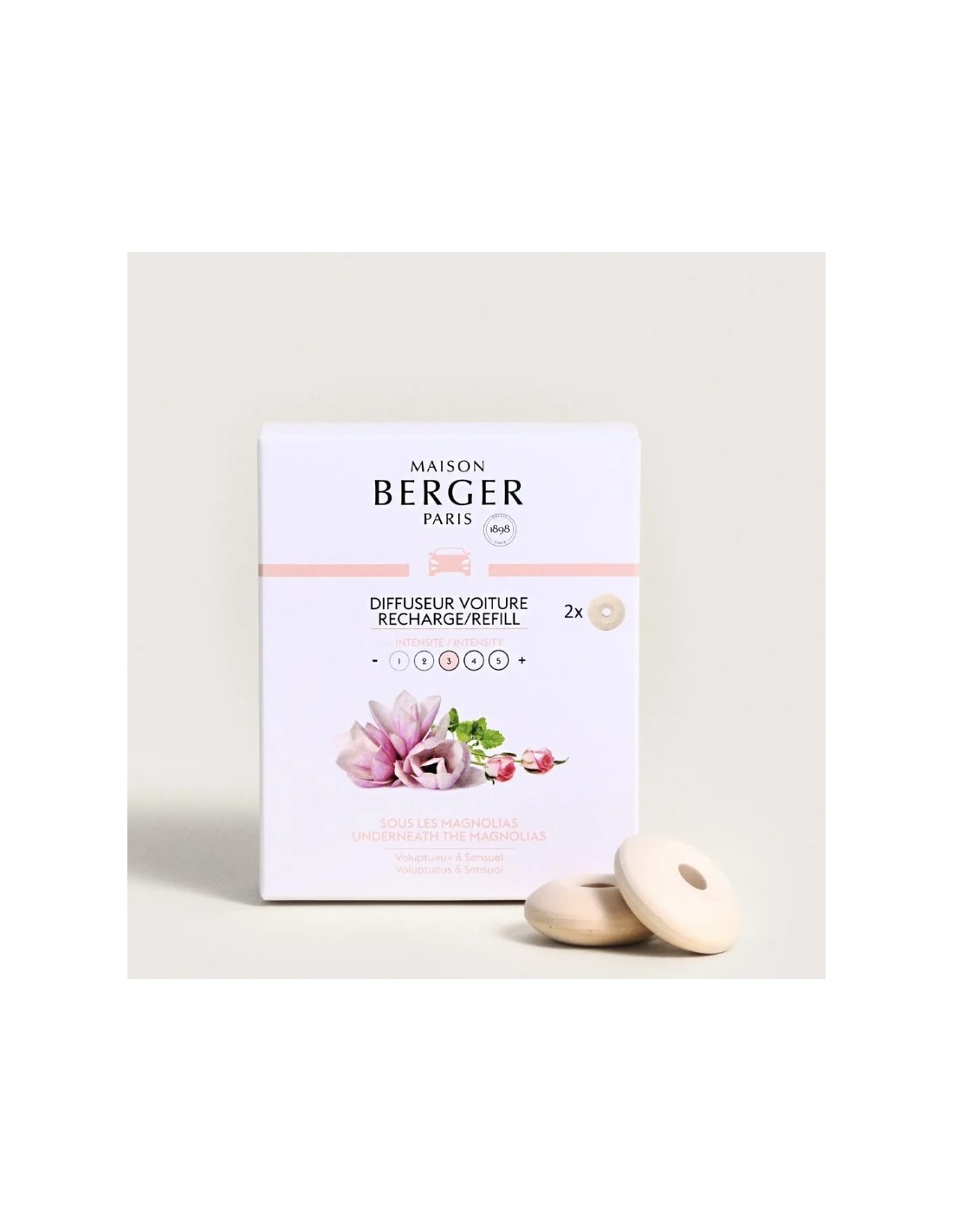 Este delicado aroma floral envuelve tu coche en una fragancia fresca y elegante, recordando la suave brisa primaveral que acaricia los jardines llenos de magnolias en flor.