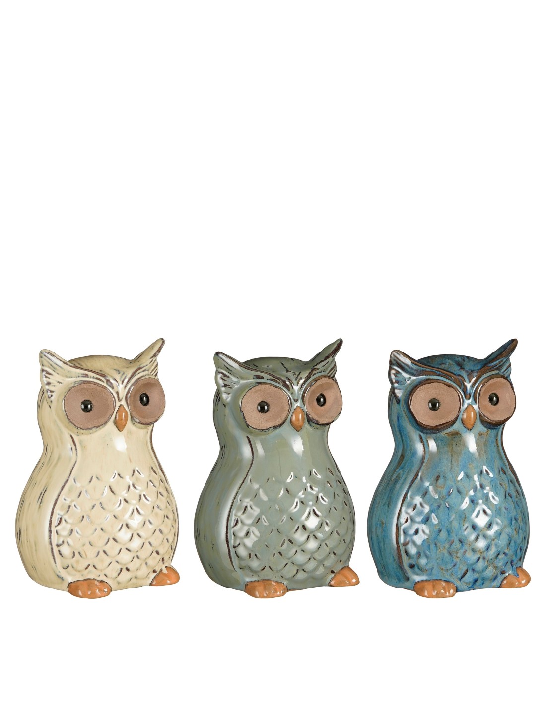 BUHO CREMA AZUL VERDE 13X13X9CM