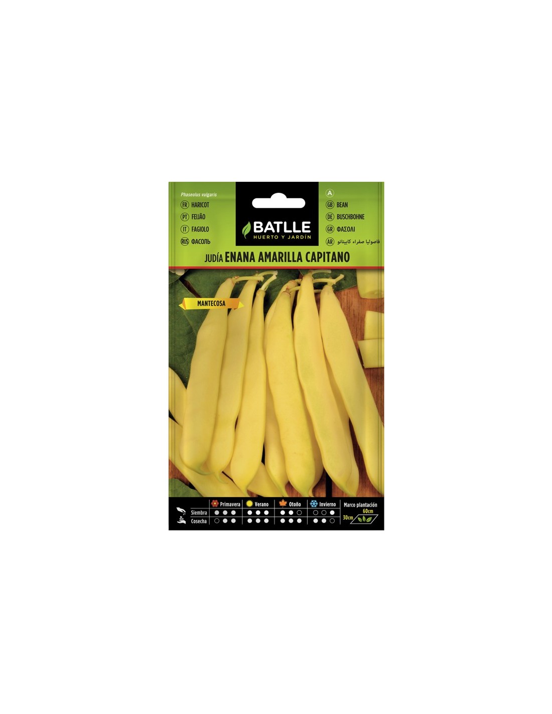 Cada paquete contiene 250 gramos de semillas, suficientes para sembrar y obtener una cosecha abundante de judías amarillas.