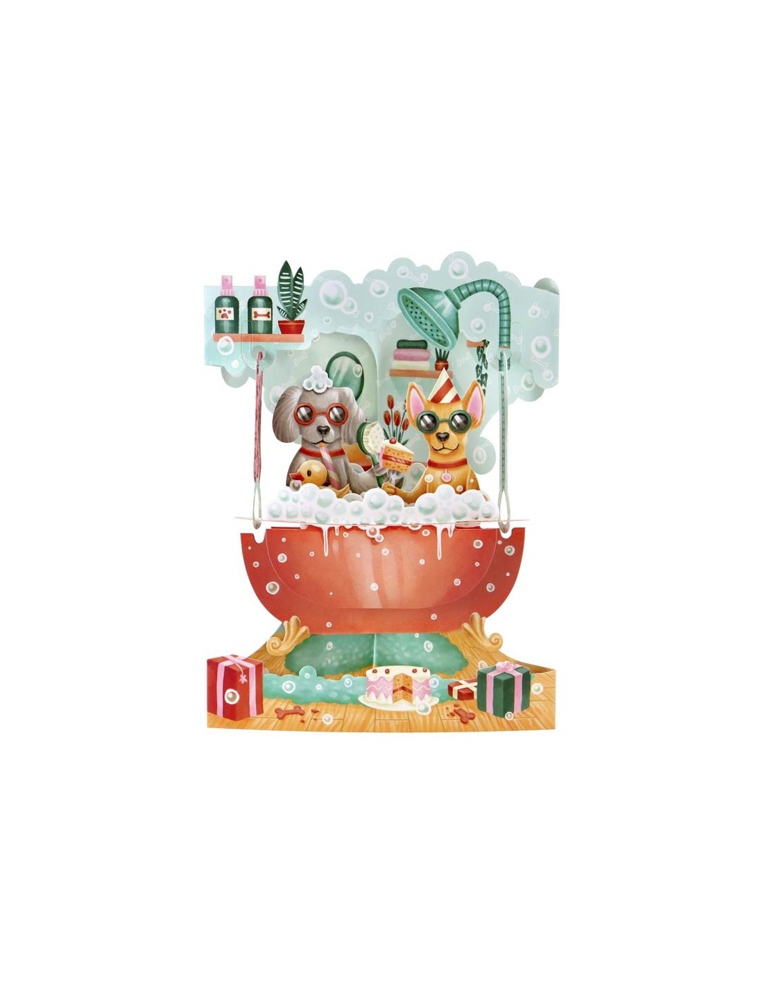 Diseño exclusivo con perros en bañera y detalles coloridos
