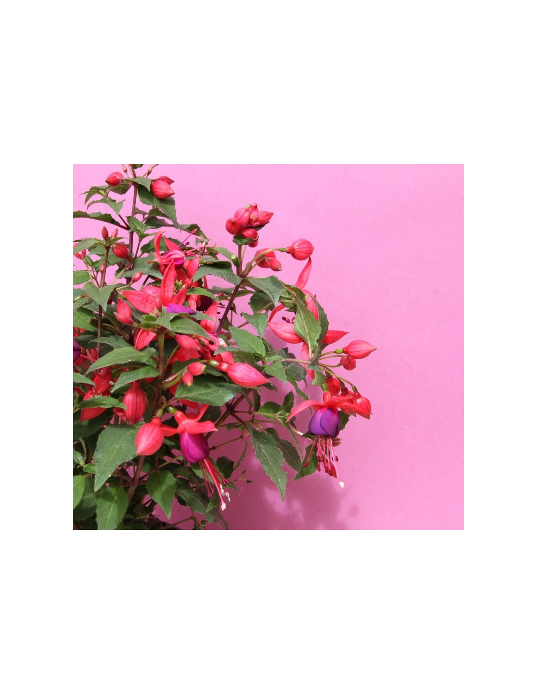 - Flores pendulares de colores vibrantes (rosas, morados y rojos)