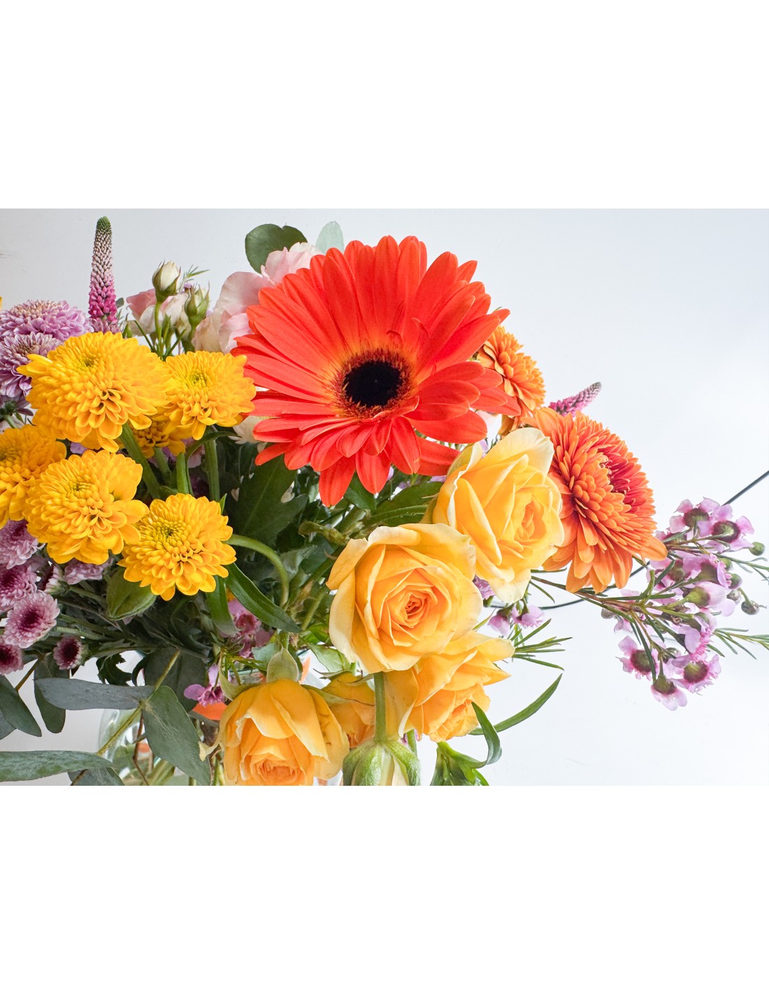 Diseño: Arreglo alegre y colorido con flores que transmiten felicidad