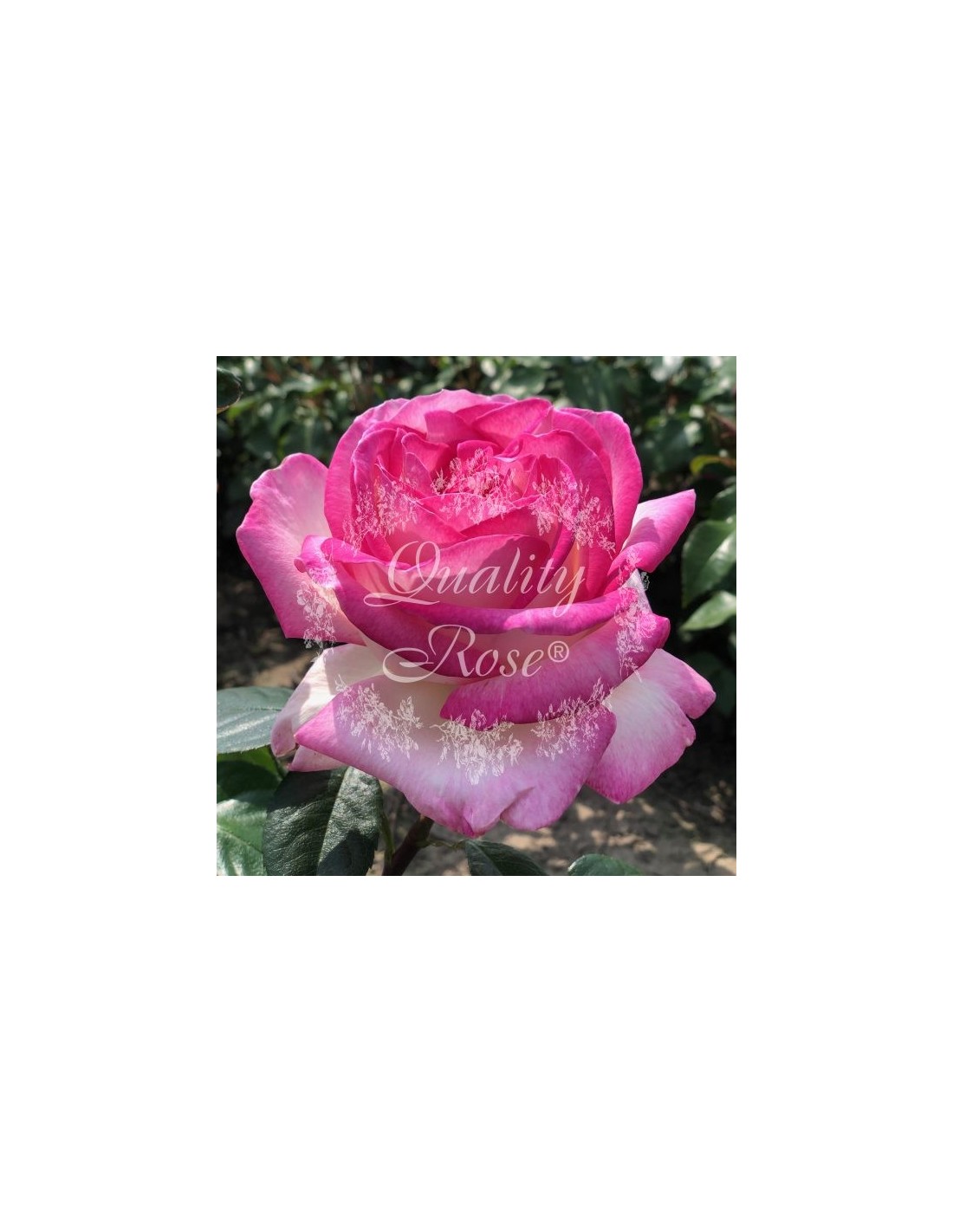 Rosa híbrida de té con flor bicolor: blanco con bordes rojos