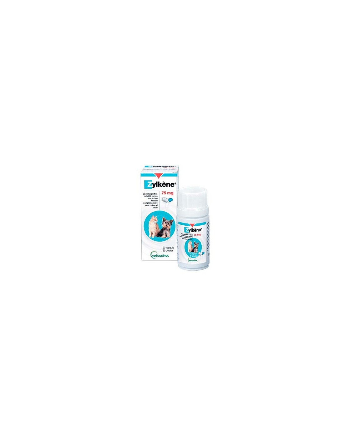 Zylkene 75mg 30 Cápsulas es un suplemento natural especialmente diseñado para perros y gatos que padecen situaciones de estrés o ansiedad. Con una fórmula a base de alfa-casozepina, un ingrediente activo derivado de la leche, este producto actúa de forma eficaz y suave para promover el bienestar de tu mascota. Ideal para momentos de cambio o situaciones que generen nerviosismo, como viajes, visitas al veterinario, ruidos fuertes o cambios en el entorno.